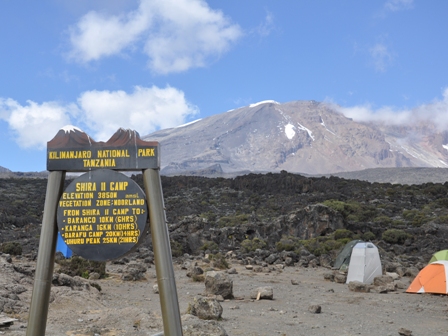 If starting on the Shira route, drive from Londorossi gate to Morum picnic site (3,400m) and a 4 hour trek to Shira 1 camp, overnight stay there. Next day, trek to Shira 2 camp via Cathedral junction. Whilst the detour via Cathedral may seem a Long way, it has fabulous views and is also excellent for acclimatisation (walk high, sleep low)