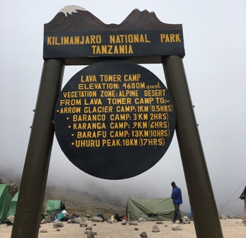 Day 5: Karanga Camp (4,035 m) – Barafu Camp (4,640 m). A short hop of around 3-4 hours, reaching Barafu camp around noon or 1pm, Offers a great view of the summit. The two peaks of Mawenzi and Kibo are visible from Barafu.